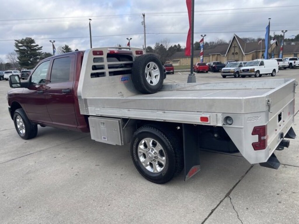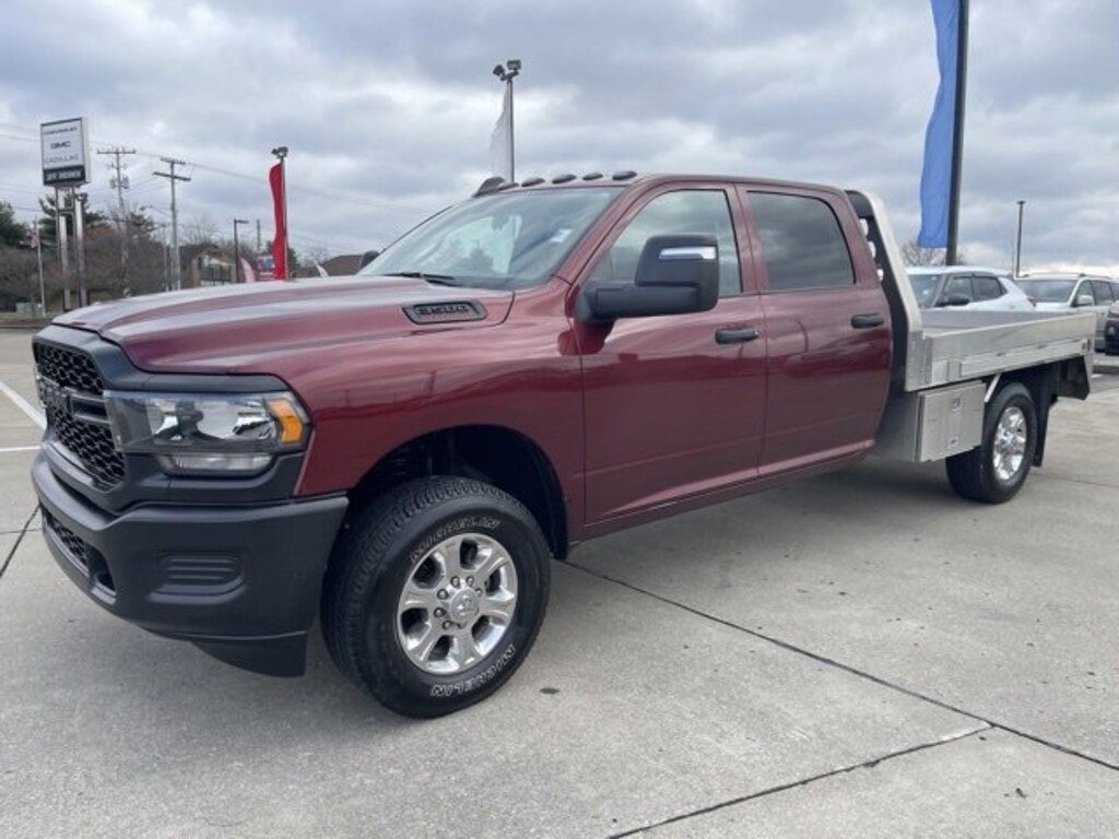 PLEASE, BRING YOUR TRADE AND TEST DRIVE THIS USED DELMONICO RED PEARLCOAT 2024 RAM 3500 CAB CHASSIS TRADESMAN CREW CAB FOUR WHEEL DRIVE TRUCK THAT IS EQUIPPED FOR YOUR COMFORT AND CONVENIENCE AND HAS ADVANCED SAFETY AND CONNECTIVITY OPTIONS. STOP BY TODAY AND DISCOVER MORE. FREE CARFAX REPORT.